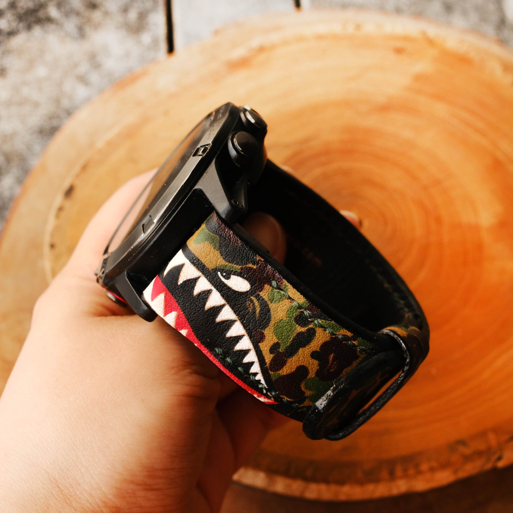 Garmin Custom Design Camo Warhawk Leather Strap Handmade